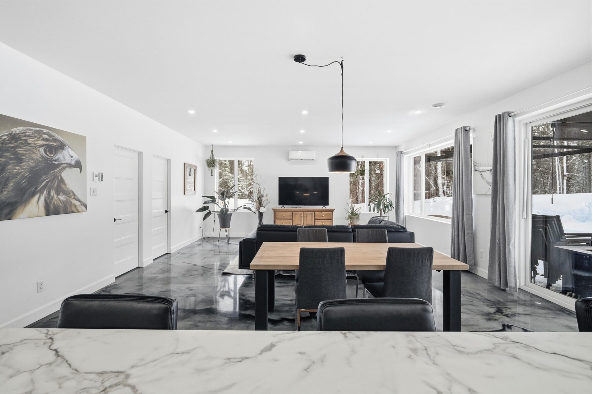 Un vrai havre de paix construit sur dalle et baignée de lumière. Situé dans un environnement paisible sans voisin arrière. Vous serez charmé par son vaste terrain boisé de plus de 100,000 pc, offrant intimité et contact direct avec la nature. À seulement 20 minutes de la ville, cette propriété vous propose un espace parfait pour les amateurs de plein air. Un coin de paradis où il n'est pas rare d'apercevoir des animaux sauvages passer, ajoutant une touche magique à votre quotidien.